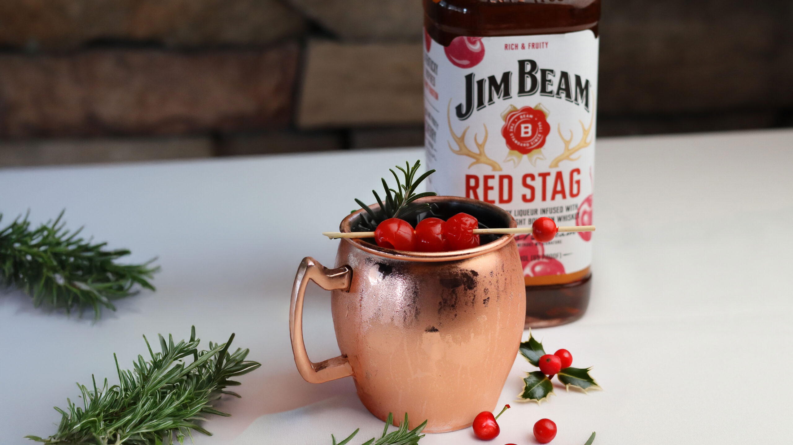 Red Stag mixed with ginger beer and a splash of cranberry for a smooth and bubbly mule with a hint of holiday cheer.