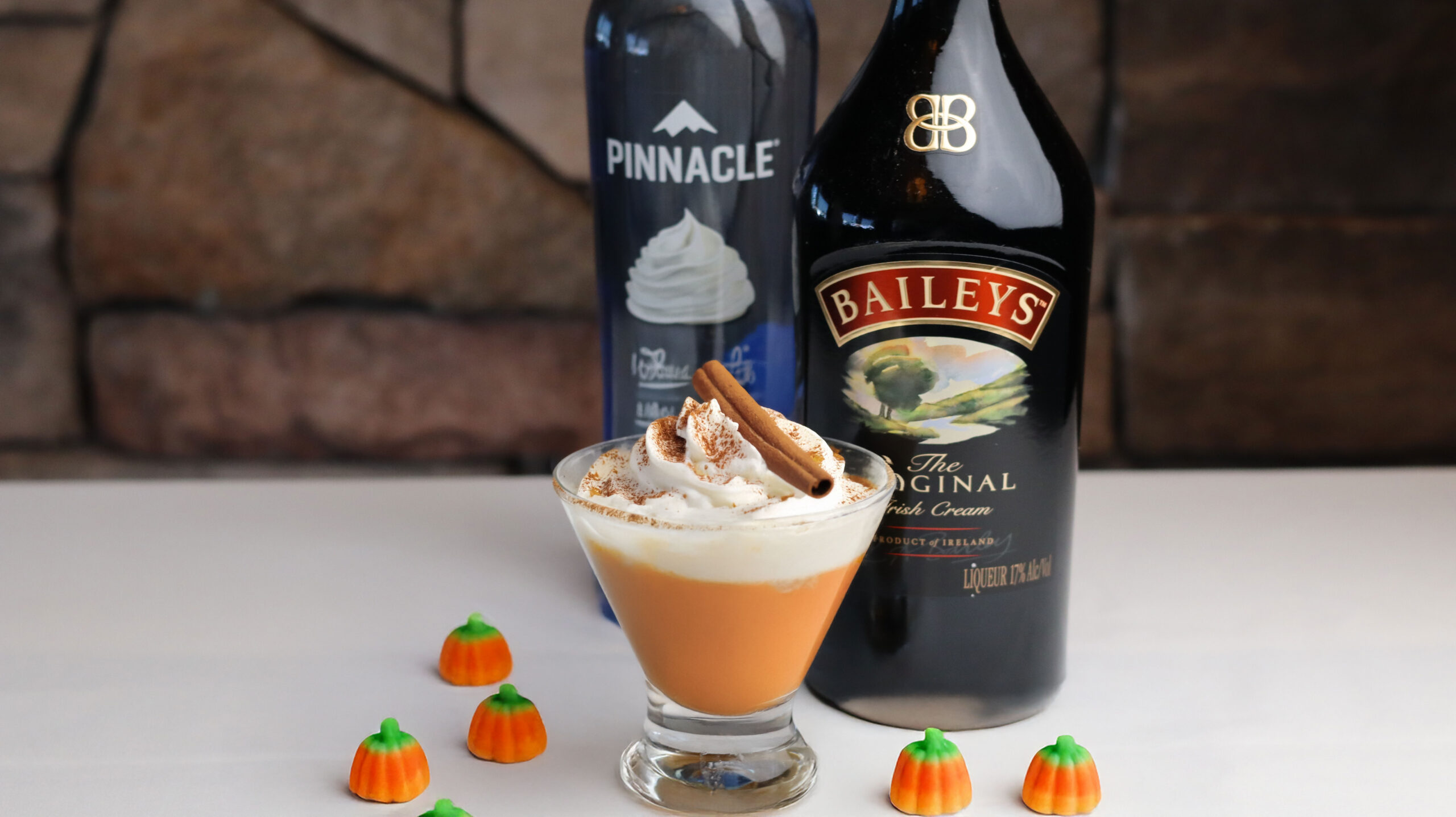 A cozy fall sipper made with real pumpkin puree, Pinnacle whipped vodka and Bailey’s. Like a slice of pie, with a little buzz.